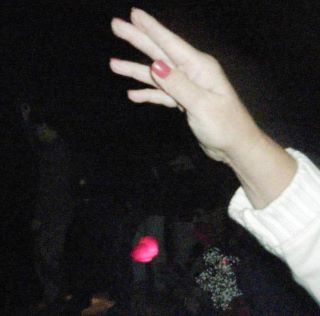 "Imagine 18 of us and a dog out on two really huge rocks below the cannons with water on each side. The wind picked up intensely, tried to figure out which way to throw our roses. Threw our roses, really cool watching them float by flashlight, Jeanne slipped on rock, John stating he can't swim, and now the sky opened up with a downpour rain. Eighteen of us are now running back up and down slippery rocks to the parking lot to where the rain had stopped. Thanks for the laughs, Kim! Yes, 53-year olds still can run when they have to!!" - Lynda (Harriman) Racine 10.16.11
