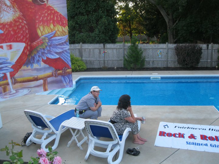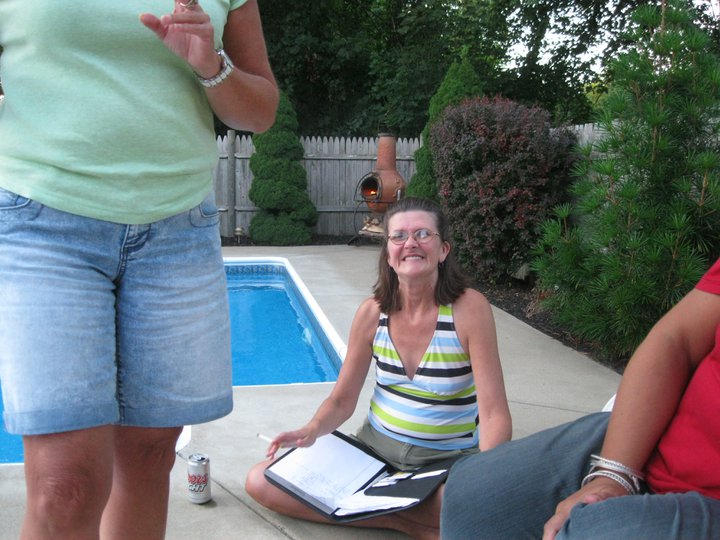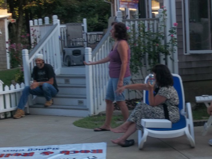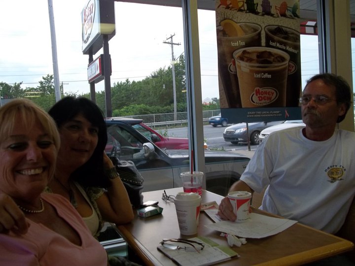 These next photos follow the second phase of “Operation Glass Gift”. The logistics or the planning out of the Yard Sale at the end of the summer. The group meets at the old A&W Root Beer joint now known as Honey Dew doughnuts. Group of our Rock & Roll Girls putting it all together as John writes it all down. Yeah, that’s John, difficult to identify without a blue can huh?